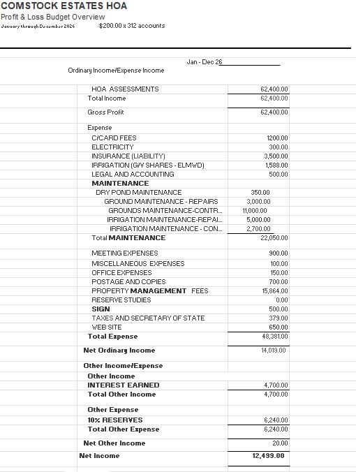 Your 2026 invoices went out via email on Dec. 26th.  If you are receiving this email, then your invoice was also emailed with a few requested exceptions.  It was sent from comstockhoahoainvoices@gmail.com.  If you don’t see it in your Inbox, please check your Junk or Spam folders.  Several dozen invoices were USPS mailed to those who have requested mailed invoices or possibly new owners whose info I don’t have yet.